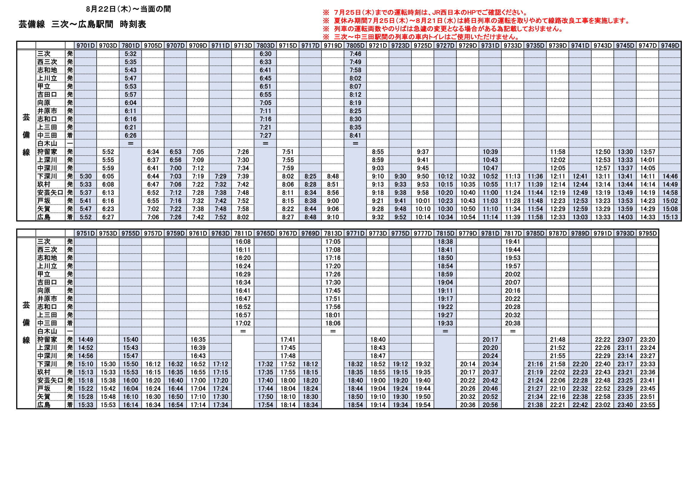 芸備線 徐行区間解消 8月22日から三次 中三田の運転時刻変更 時刻表画像拡大ok 資料 鉄道コラム 鉄道チャンネル